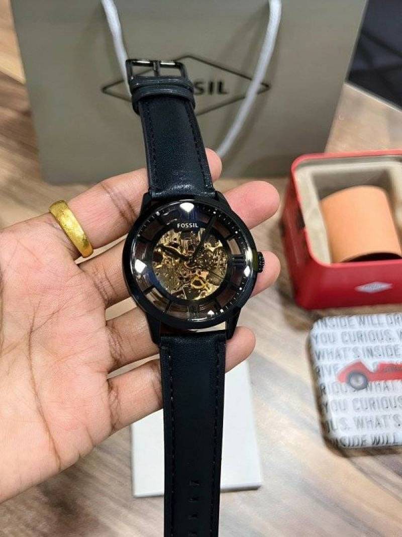 Upgrade your wrist game with this sleek and stylish skeleton watch. Designed with a bold black finish and a transparent dial, it reveals the intricate inner mechanism, adding a premium and eye-catching touch to your look. The all-black design paired with a smooth leather strap makes it a perfect blend of elegance and modern fashion.