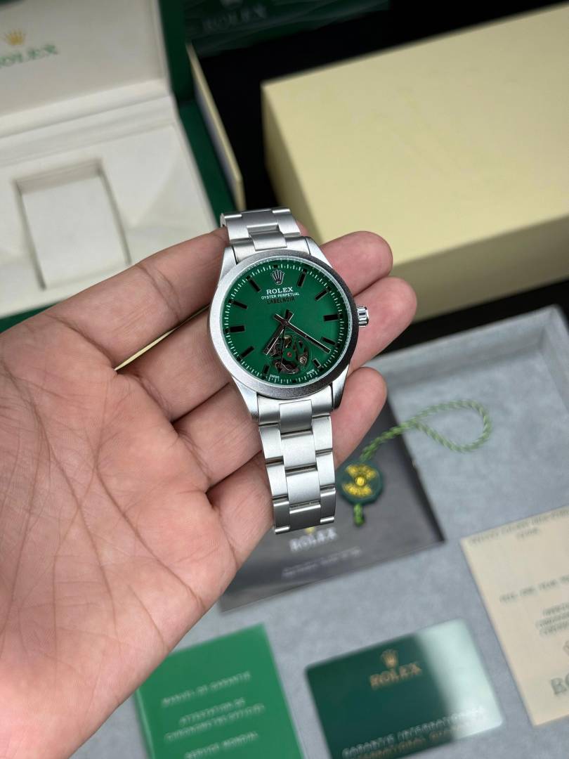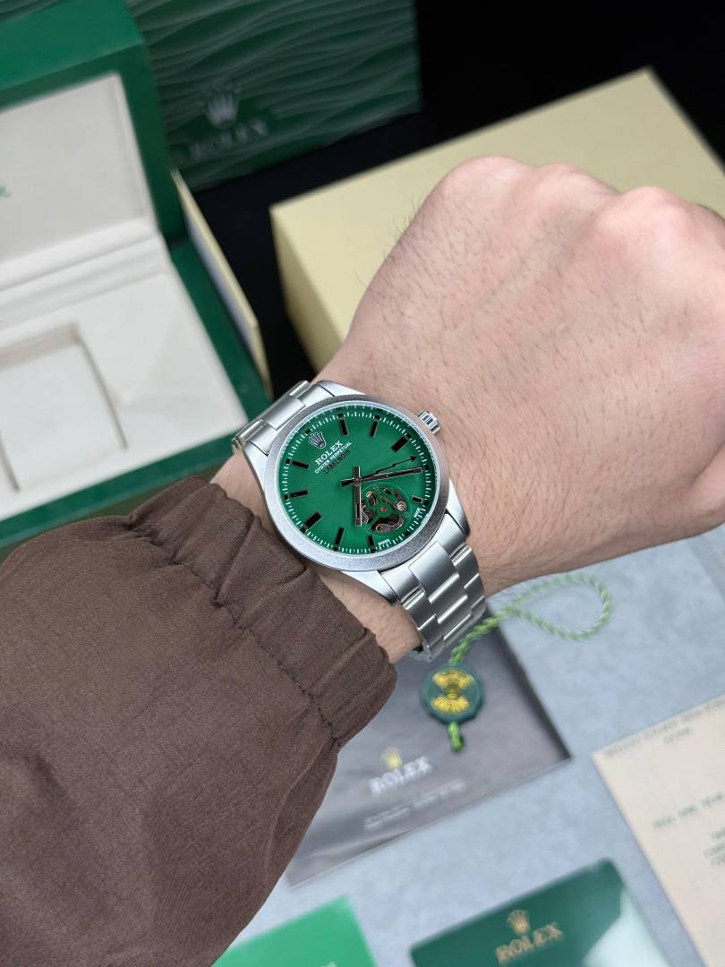 Role_x Oyster Perpetual Label Noir Automatic Silver-Green